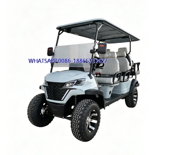 This 4-seater lifted electric golf cart is a versatile utility vehicle designed for both golf course operations and off-road adventures.