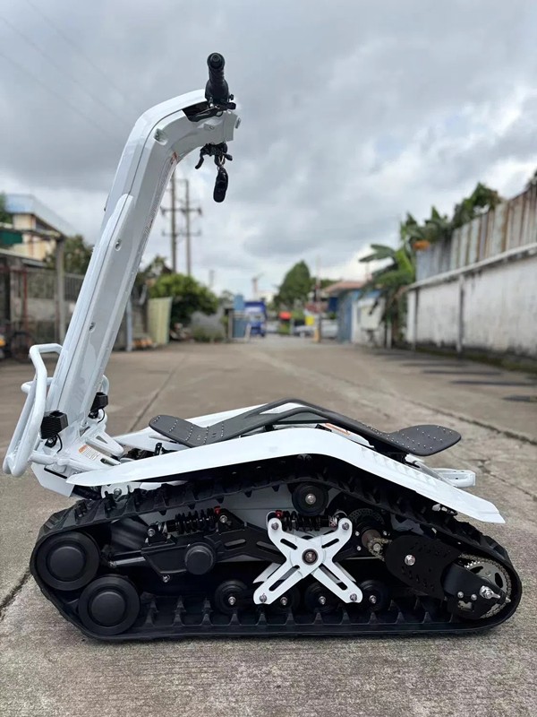 This electric snowmobile-standing is a high quality latest invention and we can provide a 1 year warranty. 100% electric, versatile, easy to use and low maintenance, this product is suitable for all types of riders, regardless of skill level. The electric snowmobile-standing is powered by dual high-quality 3kw motors and large-capacity lithium batteries, which is ideal for traveling through dense forests and driving in deep snow. The skateboard steering system allows you to enjoy driving in any seasons. This electric snowmobile-standing is equipped with two durable rubber tracks, which will help you conquer all terrains with ease. The handlebars fold down for easy transportation and storage.