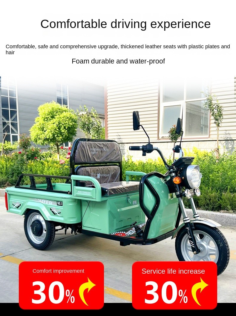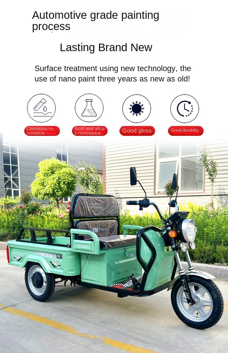 Product name : Quality Electric 1200w Motor Three-Wheel Cargo Tricycles Open Body Dumping Mobility for Family Use 48v Voltage Gasoline Driving